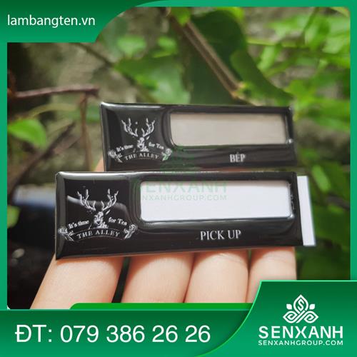 Đây là một sự lựa chọn hoàn hảo cho các nhà hàng, khách sạn có sự thay đổi, luân chuyển công việc giữa các chi nhánh cao. Đối với loại bảng tên này, khách hàng có thể thoải mái thiết kế màu sắc, kích thước, hình dáng logo, tên nhân viên,…để in vào giấy A4 và đặt vào bảng tên. Có thể thoải mái thay đổi bất cứ lúc nào mà không cần thêm chi phí làm bảng tên mới.